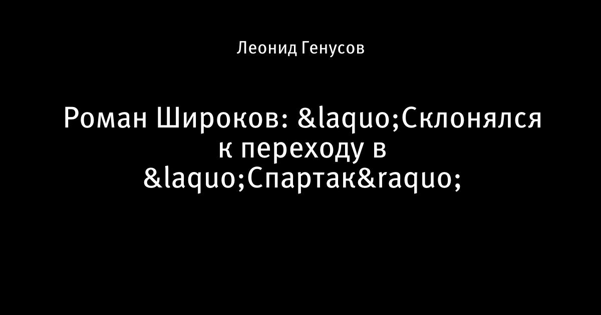 Роман Широков: «Склонялся к переходу в «Спартак»