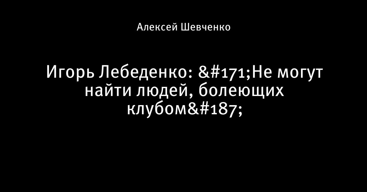 Игорь Лебеденко: «Не могут найти людей, болеющих клубом»