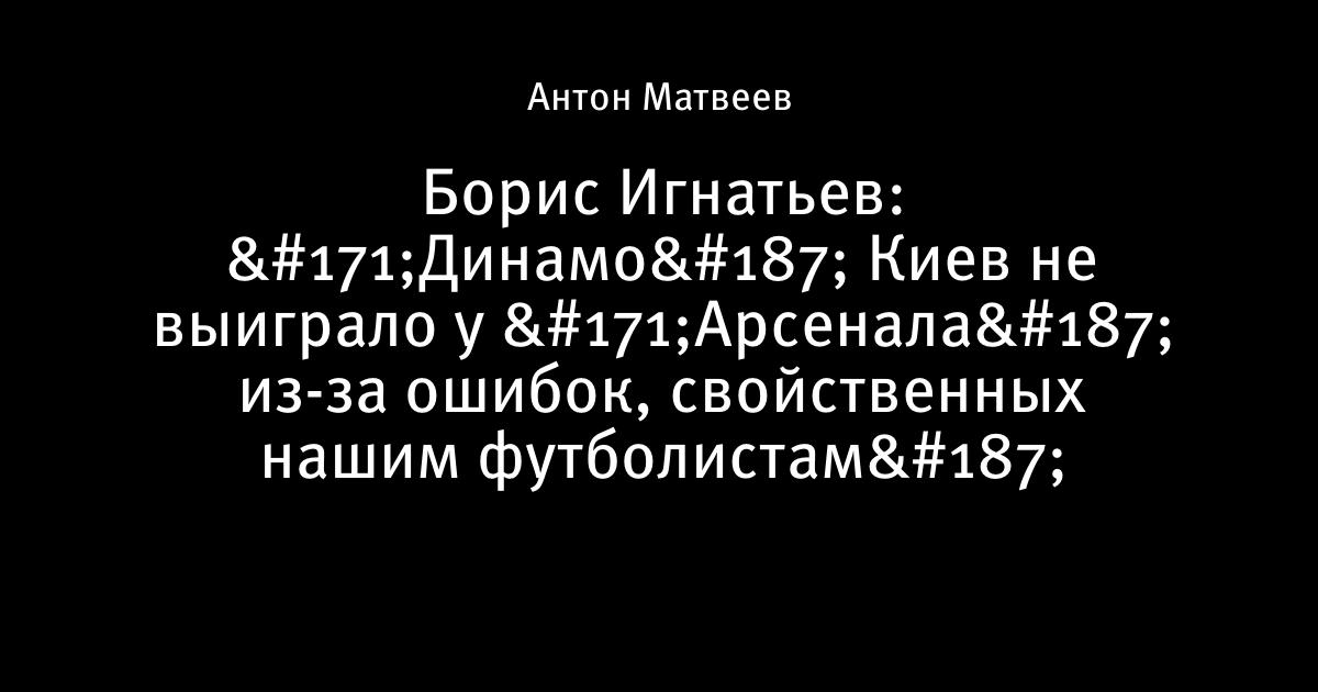Борис Игнатьев: «Динамо» Киев не выиграло у «Арсенала» из-за ошибок, свойственных нашим футболистам»