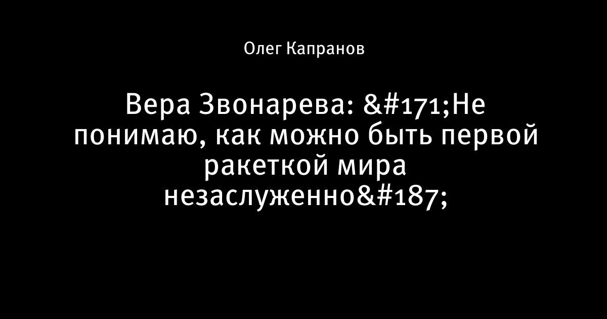 Вера Звонарева: «Не понимаю, как можно быть первой ракеткой мира незаслуженно»