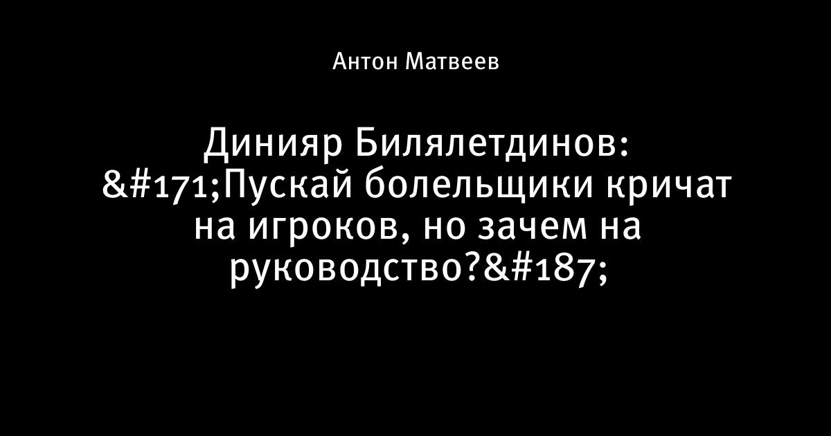 Динияр Билялетдинов: «Пускай болельщики кричат на игроков, но зачем на руководство?»