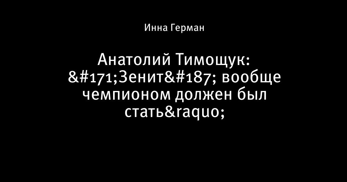 Анатолий Тимощук: «Зенит» вообще чемпионом должен был стать»