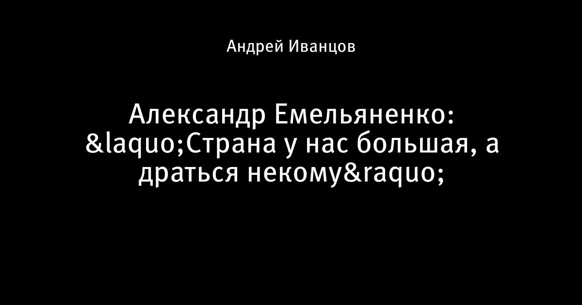 Александр Емельяненко: «Страна у нас большая, а драться некому»