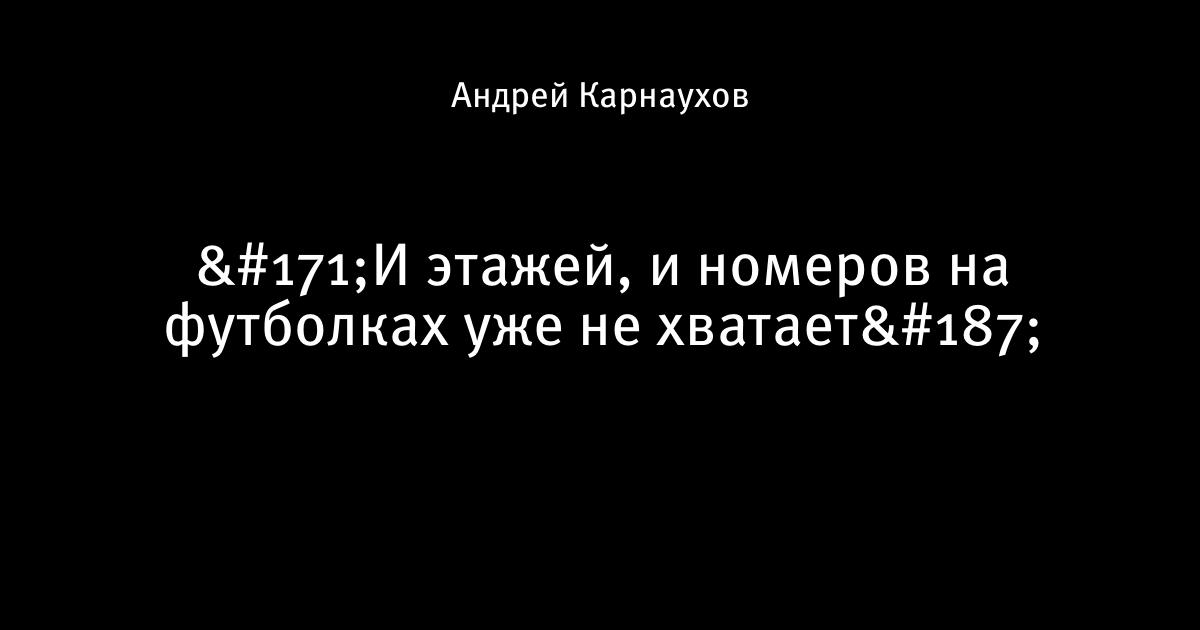 � Да потому, что цены выросли: и этажей, и номеров на футболках уже не хватает, � горько пошутил мой собеседник. � Они же сейчас меньше полтинника не берут.