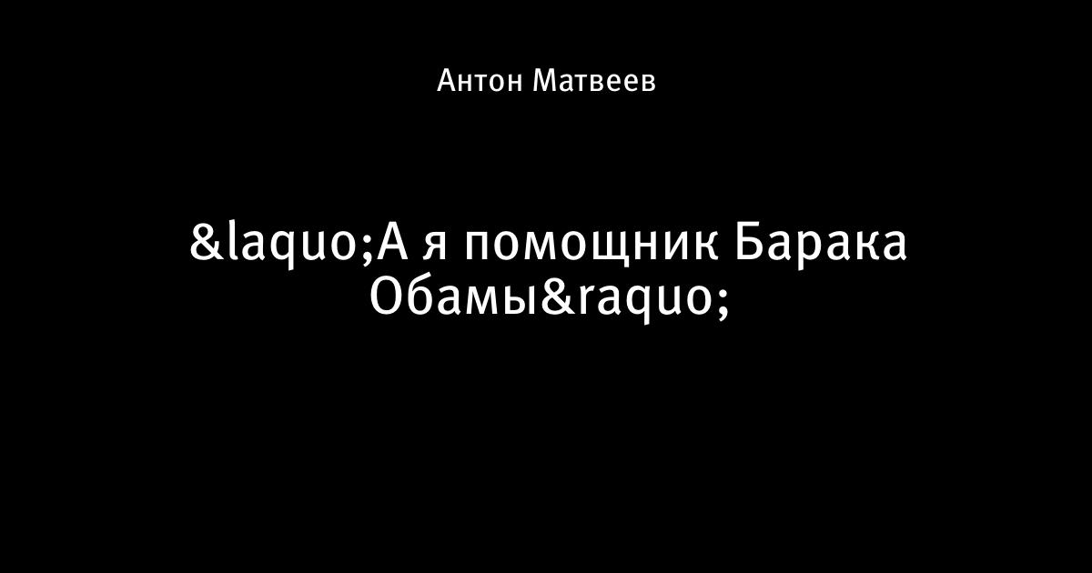 – А я помощник Барака Обамы, – взорвал политическую бомбу Карамбе. – Шутка – тут же разочаровал Кристиан.