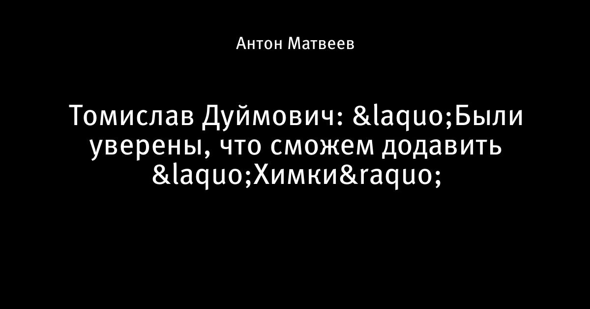 Томислав Дуймович: «Были уверены, что сможем додавить «Химки»