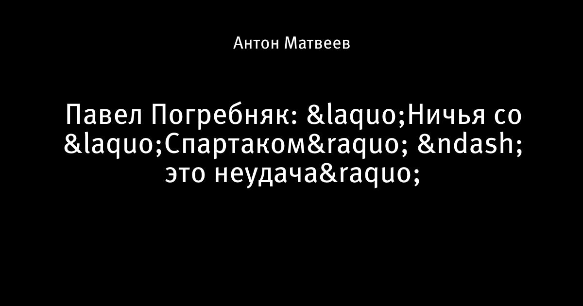 Павел Погребняк: «Ничья со «Спартаком» – это неудача»