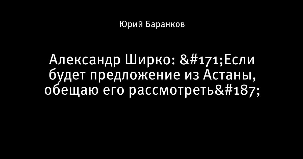 Александр Ширко: «Если будет предложение из Астаны, обещаю его рассмотреть»