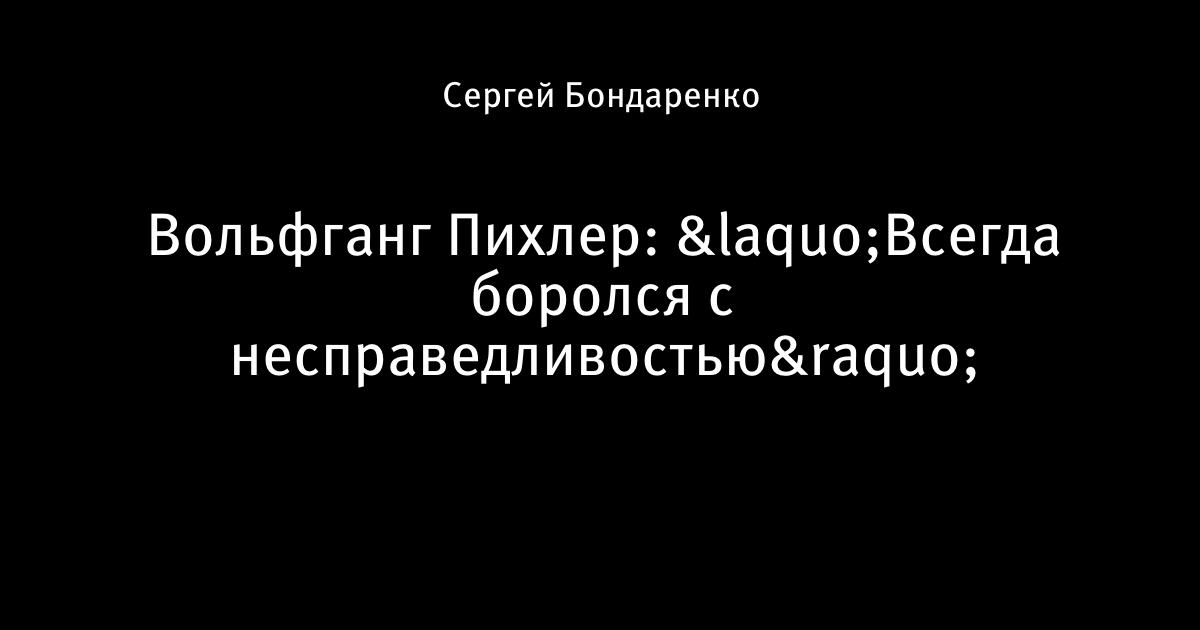 Вольфганг Пихлер: «Всегда боролся с несправедливостью»