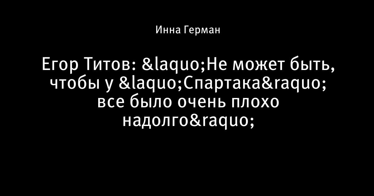 Егор Титов: «Не может быть, чтобы у «Спартака» все было очень плохо надолго»