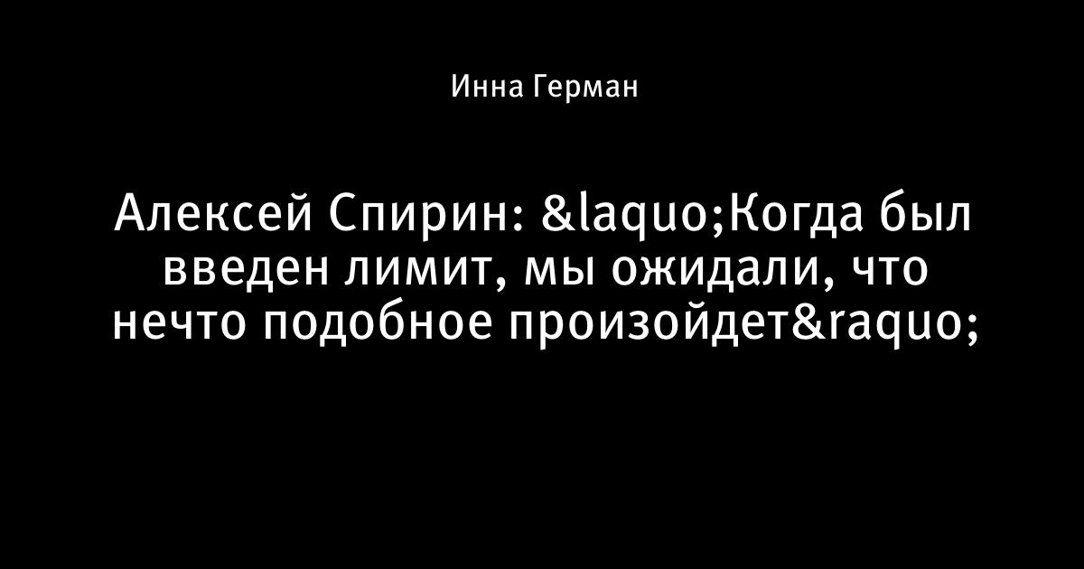 Алексей Спирин: «Когда был введен лимит, мы ожидали, что нечто подобное произойдет»