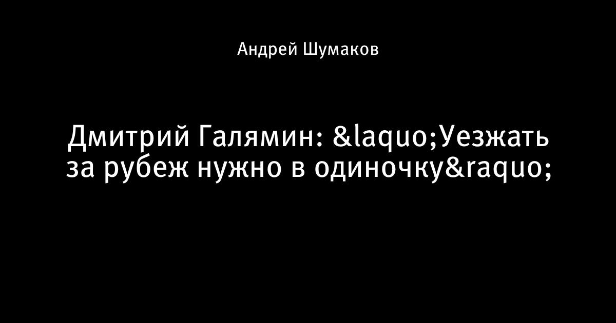 Дмитрий Галямин: «Уезжать за рубеж нужно в одиночку»