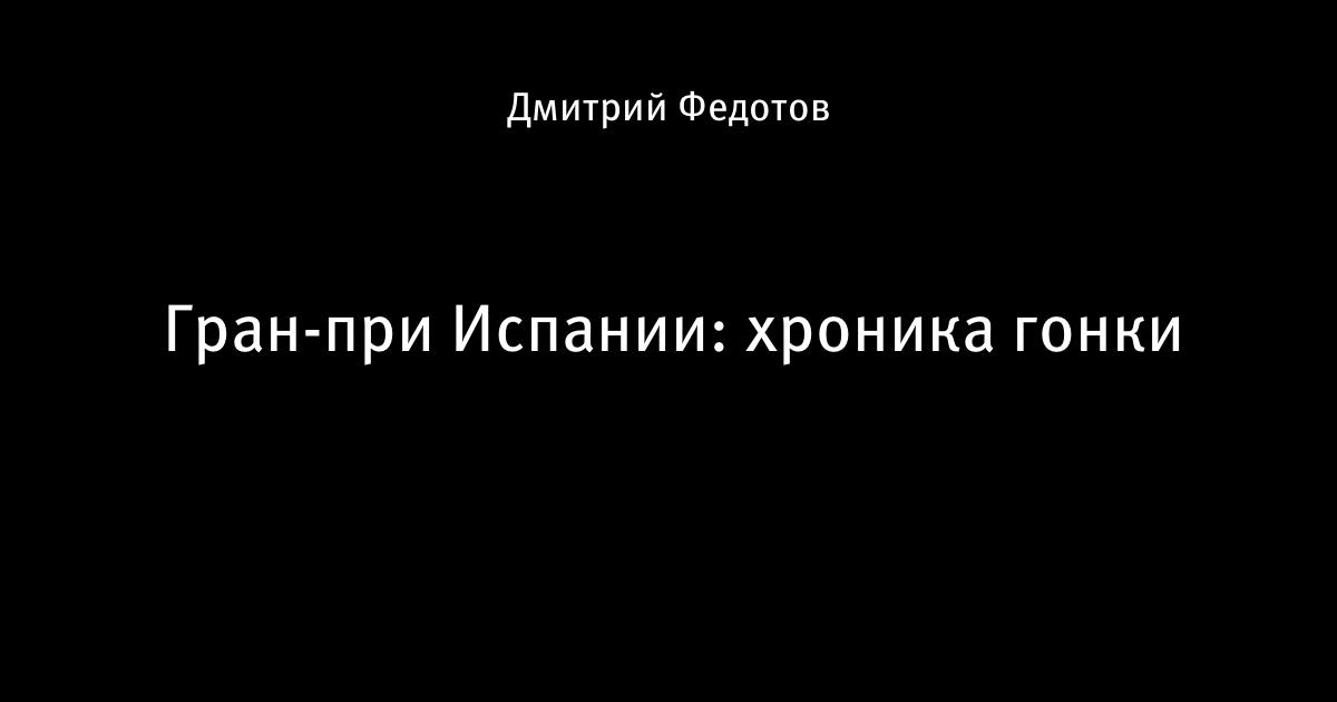 15.00 Здравствуйте, дорогие друзья! Sports.ru начинает текстовый онлайн пятого этапа чемпионата мира по автогонкам в классе «Формула-1». Гран-при Испании стартует через час.