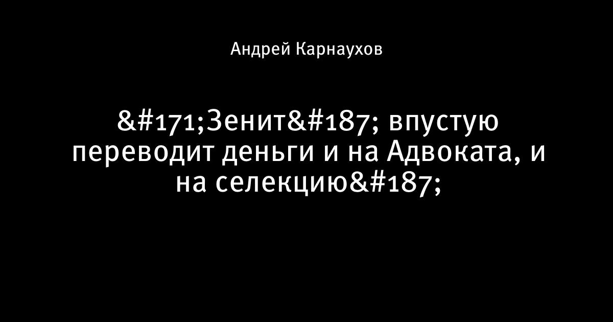 «Зенит» впустую переводит деньги и на Адвоката, и на селекцию»