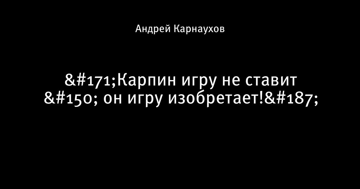 И мне подумалось: а Карпин-то, пожалуй, игру не ставит � он игру изобретает! Окунается в те забытые времена, когда футбол был еще делом живым и увлекательным и представлял собой захватывающе-несравненное занятие для пытливого, ищущего и неутомимого ума. <�> Одним словом, развернута работа с людьми, выявляется их волевой и творческий ресурс. Тоже ведь совсем не характерный пример для нынешней России. Самая яркая иллюстрация: впервые за несколько лет я с огромным и неожиданным для себя интересом слежу за Володей Быстровым. Прямо-таки кожей чувствую, как он всеми силами старается выкрутить, выломить себя в новую плоскость, переделать из игрока эмоционального в игрока волевого.