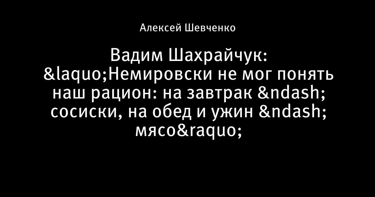 Вадим Шахрайчук: «Немировски не мог понять наш рацион: на завтрак – сосиски, на обед и ужин – мясо»