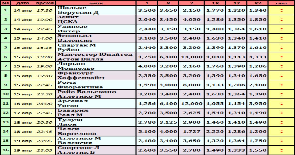 В помощь игрокам выкладываю эксельку для заполнения прогноза: тут.