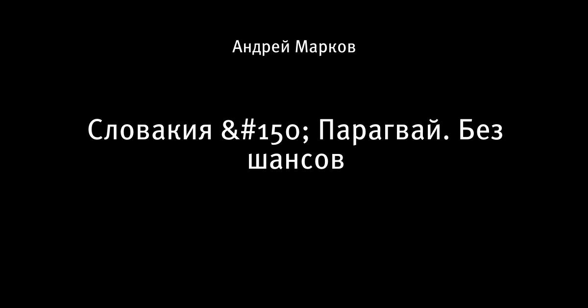 За счет чего сборная Словакии, так многим понравившаяся в европейском отборе, собиралась разжиться очками в игре с Парагваем, так и осталось загадкой. Способная на многое в прогнозах, в реальности словацкая команда оказалась не готова к встрече с первым серьезным соперником на турнире. Парагвай во второй игре на турнире сумел подтвердить и как нельзя ярче подчеркнуть впечатления от матча с Италией � по части физической готовности и способностей в борьбе равных команде Херардо Мартино на турнире немного. Что же до Словакии, то, похоже, свой единственный шанс добиться большего в подаренной жребием группе словаки упустили еще в добавленное время игры с Новой Зеландией.