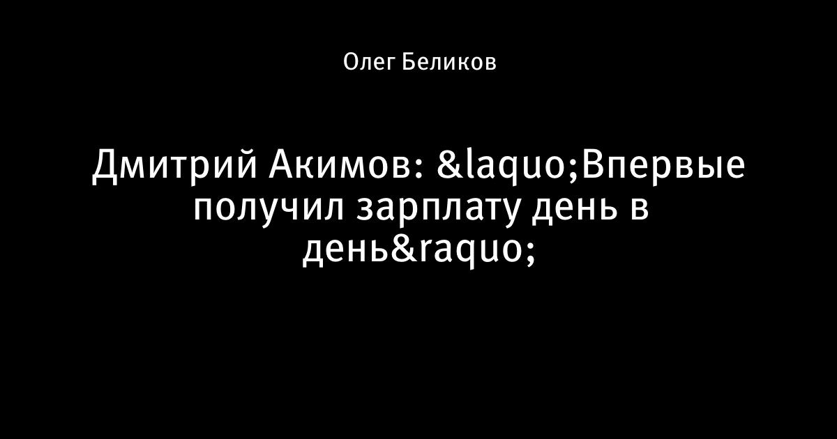 Дмитрий Акимов: «Впервые получил зарплату день в день»