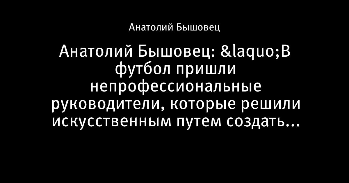 Анатолий Бышовец: «В футбол пришли непрофессиональные руководители, которые решили искусственным путем создать торсиду»