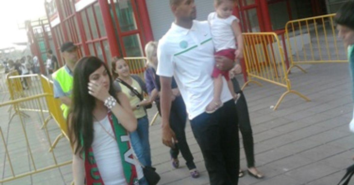 После игры он с сумкой наперевес шел в направлении вип-выходов, откуда ему навстречу неслась маленькая девочка. В следующее мгновение ребенок оказался на руках у здоровяка и принялся обнимать и целовать его в щеку. Футболист поздоровался с людьми, которые шли позади девочки, начал с ними что-то обсуждать и внезапно перешел на русский.