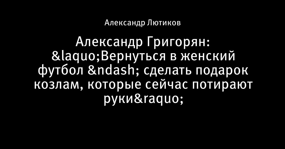 Александр Григорян: «Вернуться в женский футбол – сделать подарок козлам, которые сейчас потирают руки»