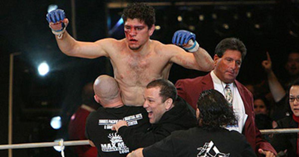 Бои Ника Диаза сегодня могут быть в одной категории с фильмами, которые называют самыми ожидаемыми какого-то там периода. Если вы еще не начали следить за этим парнем, если еще не посмотрели будущий бой года с Полом Дэйли и отличную рубку с Евангелисто Сантосом, то пора бы уже. Только осторожнее – вы вполне можете скачивать эти видео, чтобы узнать, кого же там собираются подложить под Сен-Пьера, но в их бою, уже будете болеть отнюдь не за Жоржа, становящегося все более занудным. Франко-канадец, вероятнее всего, победит: в последнее время школа все чаще бьет харизму. За последние два года Диаз единственный соперник, интерес к которому появляется из-за его поединков, а не поливания грязью, как с Косчеком или цифр, как с Шилдзом. Классическую стойку, где руки прикрывают челюсть, Диаз сохраняет в лучшем случае первую минуту, потом челюсть демонстративно выдвигается вперед, а его черные глаза начинают смотреть на вас в лучшем случае как на кусок бывших продуктов питания. Трудно поверить, что претендента на титул в UFC, когда-то выпнули из этой организации на три счета.