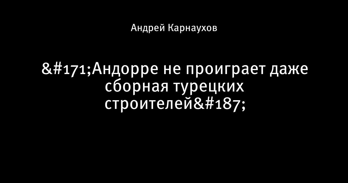 «Вариант с поражением от Андорры не рассматривается, потому что Андорре не проиграет даже сборная турецких строителей любого московского объекта, при условии если ей не будет руководить Хиддинк. Этот-то может и Андорре проиграть. Но за нашу сборную не играют турецкие строители, и нашу команду тренирует Адвокат, под руководством которого сборная России в этом отборочном цикле не провела ни одного провального матча (матч в Москве со Словакией был таким по результату, но не по содержанию) и уж точно не было такого матча, как против Азербайджана в прошлом отборе, когда «Лужники» освистывали нашу сборную.
