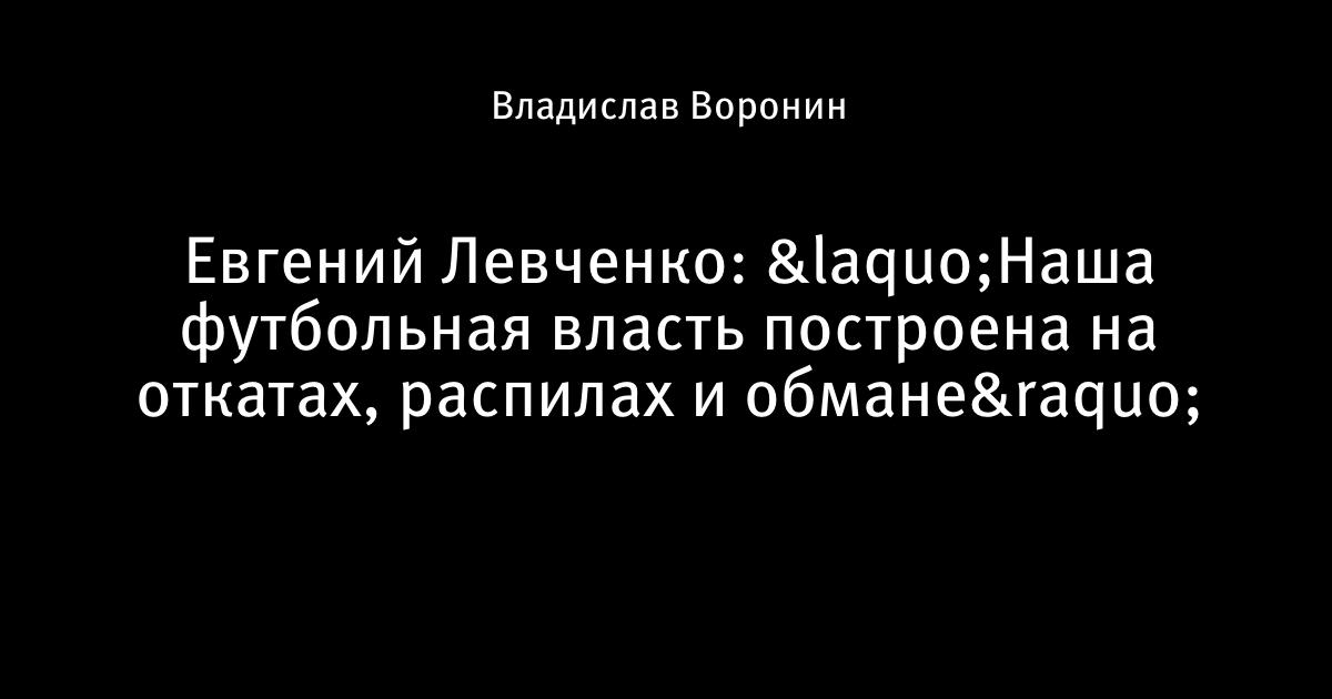 Евгений Левченко: «Наша футбольная власть построена на откатах, распилах и обмане»