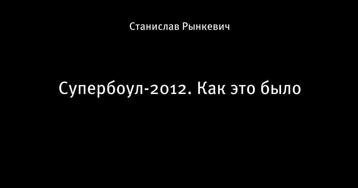 22.00 Онлайн Супербоула XLVI на Sports.ru стартует за 5 часов до официального начала игры, но по сравнению со Штатами мы безнадежно отстаем. Там событие года предвкушают уже полсуток. У вас хватит времени на то, чтобы прочитать библию американского футбола на «Трибуне» – «Как перестать бояться и полюбить американский футбол» в трех частях.