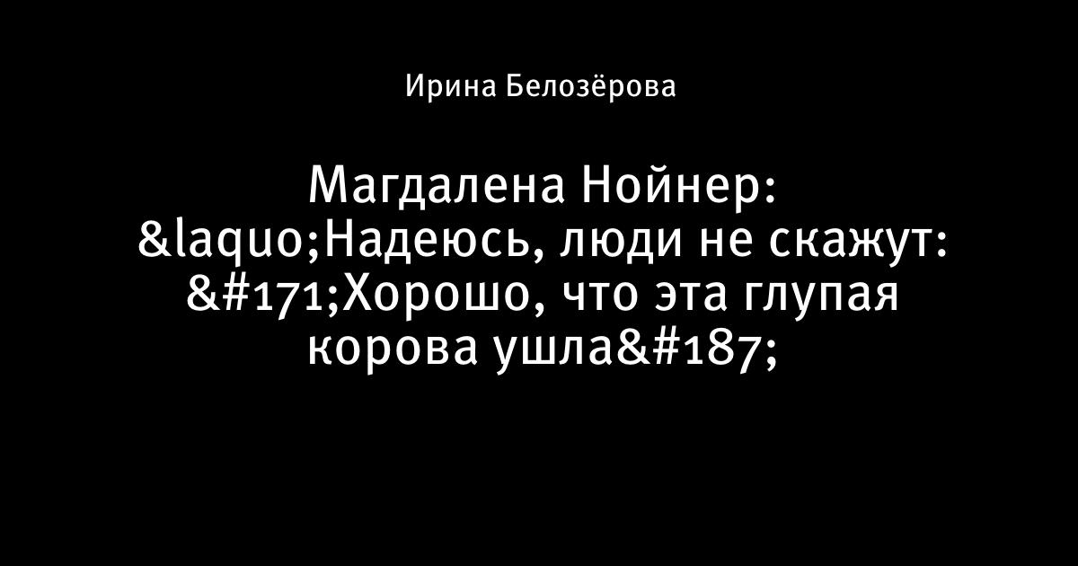 Магдалена Нойнер: «Надеюсь, люди не скажут: «Хорошо, что эта глупая корова ушла»