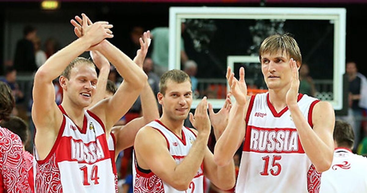 1-я минута – Россия начинает с промаха Фридзона, а Литва – с попадания Каукенаса из-за дуги – 54:53.