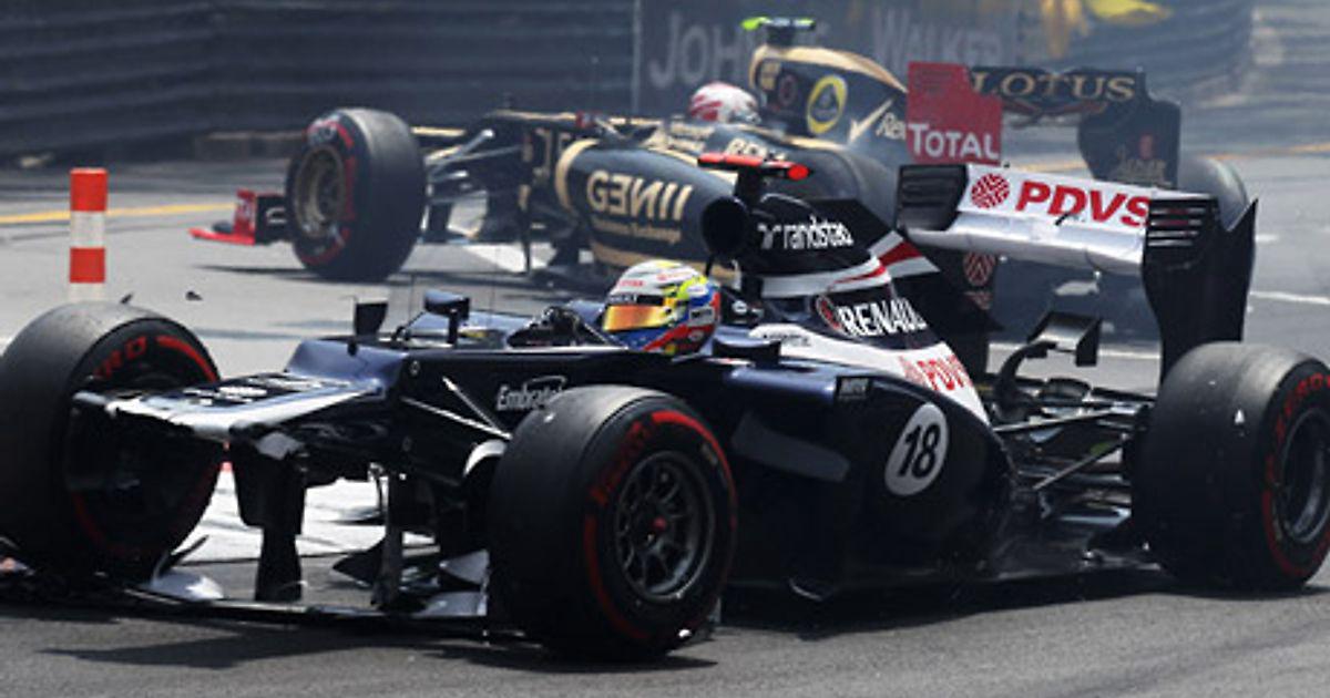 Порой кажется, что венесуэльский пилот заранее продумывает аварии, которые затем инициирует. Потому как сымпровизировать столь алогичные коллизии не под силу даже изощренным умам. Тем более с разницей в каких-то несколько дней. В четверг, по ходу свободных практик в Монте-Карло, Пастор «антикрылья-напильники» Мальдонадо с контактом подрезал Серхио Переса, а затем, видимо, осознав вину, в знак покаяния разбил машину в «Казино». Воскресным же днем уже на старте, без видимых на то причин протаранил задок болида Педро де ла Росы при подходе к «Сен-Дево». Показательно, что во всех эпизодах никакого внешнего влияния на пилота не оказывалось. Равно как и техника вела себя исправно. Что же творилось в голове самого спортсмена – загадка по сей день.