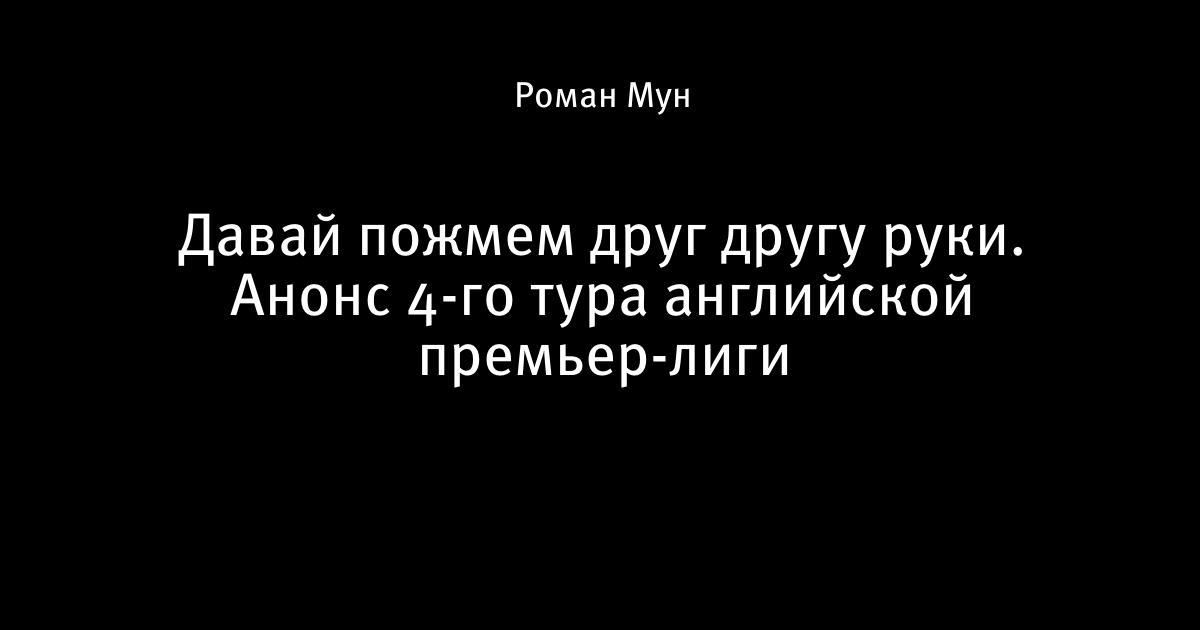 Давай пожмем друг другу руки. Анонс 4-го тура английской премьер-лиги