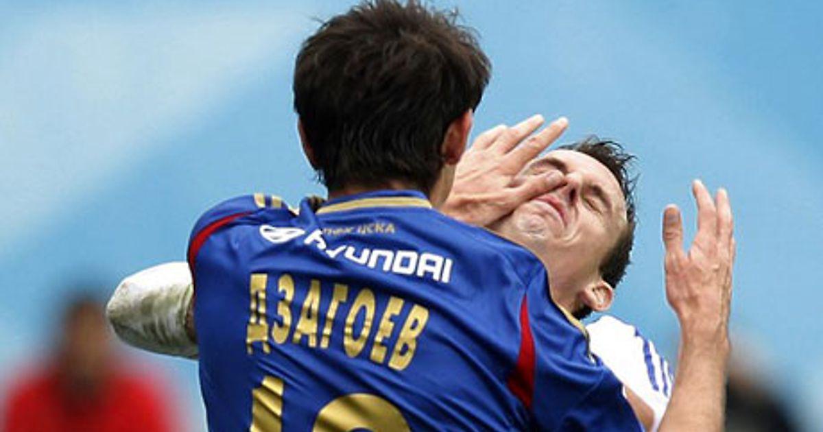 Дзагоев и Кокорин коротали минуты перед матчем, отвешивая друг другу дружеские пощечины в середине поля