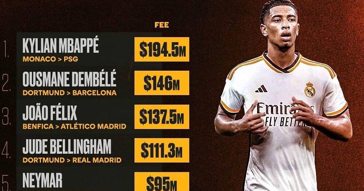 Трансфер Беллингема – 4-й за всю историю для игроков до 21 года: Мбаппе – абсолютный лидер🔥🔥🔥