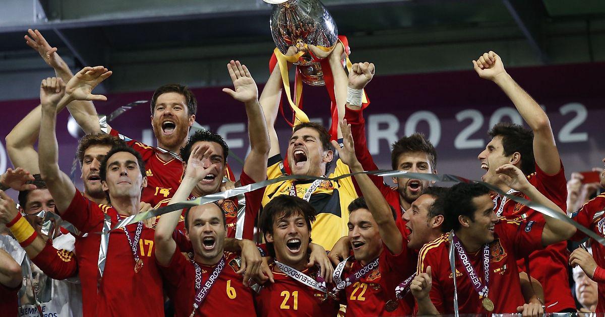 ЧЕ-2012. Доминирование Испании в Европе (и в мире) продолжалось. Ещё один уверенный выход золотого состава в финал Евро. На пути - Италия, грозный соперник, уже выбивший немцев и французов. Однако «фурия» делает все спокойно. В той игре она уверенно разносила соперника на всех стадиях игры, а итоговые 4:0 - лишь подтверждение. В старте на финал не было ни одного чистого форварда, но столь резвая командная игра компенсировала его отсутствие.