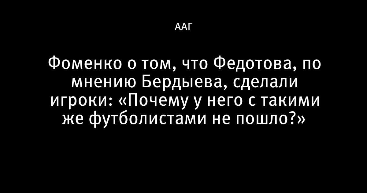 Фоменко о том, что Федотова, по мнению Бердыева, сделали игроки: «Почему у него с такими же футболистами не пошло?»