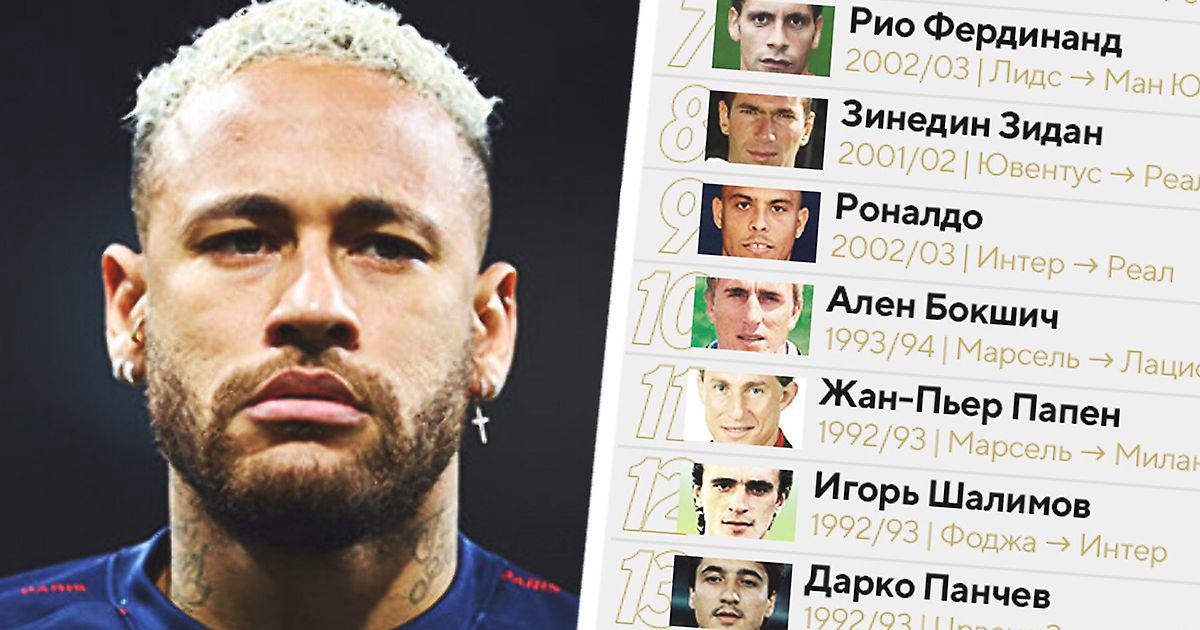 15 самых дорогих трансферов в истории с учетом инфляции. Так Неймар не первый, хотя в списке дважды