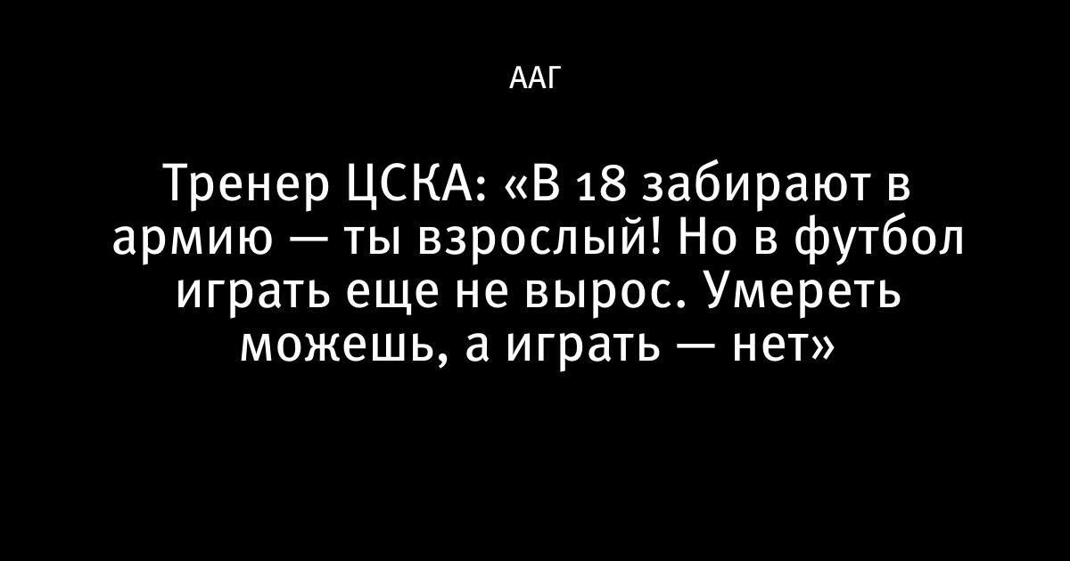 Тренер ЦСКА: «В 18 забирают в армию — ты взрослый! Но в футбол играть еще не вырос. Умереть можешь, а играть — нет»