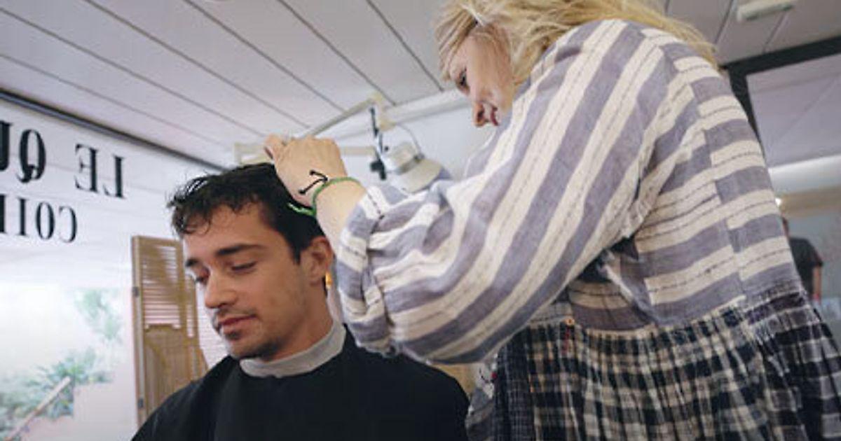 Шарль: Нет, просто срежь немного по бокам. Сейчас там слишком длинно. Такое ощущение, будто мы в рекламе для шампуня снимаемся! Не налажай сегодня, камеры снимают!