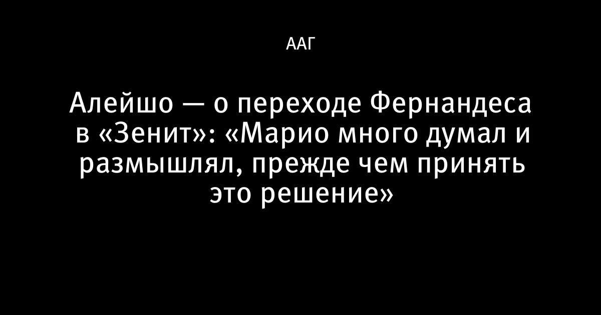 Алейшо — о переходе Фернандеса в «Зенит»: «Марио много думал и размышлял, прежде чем принять это решение»