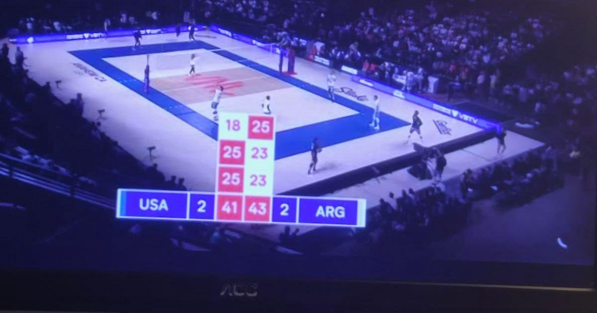 США против Аргентины. Матч сборных из верхней части таблицы.Первая партия осталась за Аргент инцами (25:18).Следующие две партии закончились в пользу Американцев(25:23 ; 25:23).Казалось бы обычный волейбольный матч сборных . Началась 4 партия...
