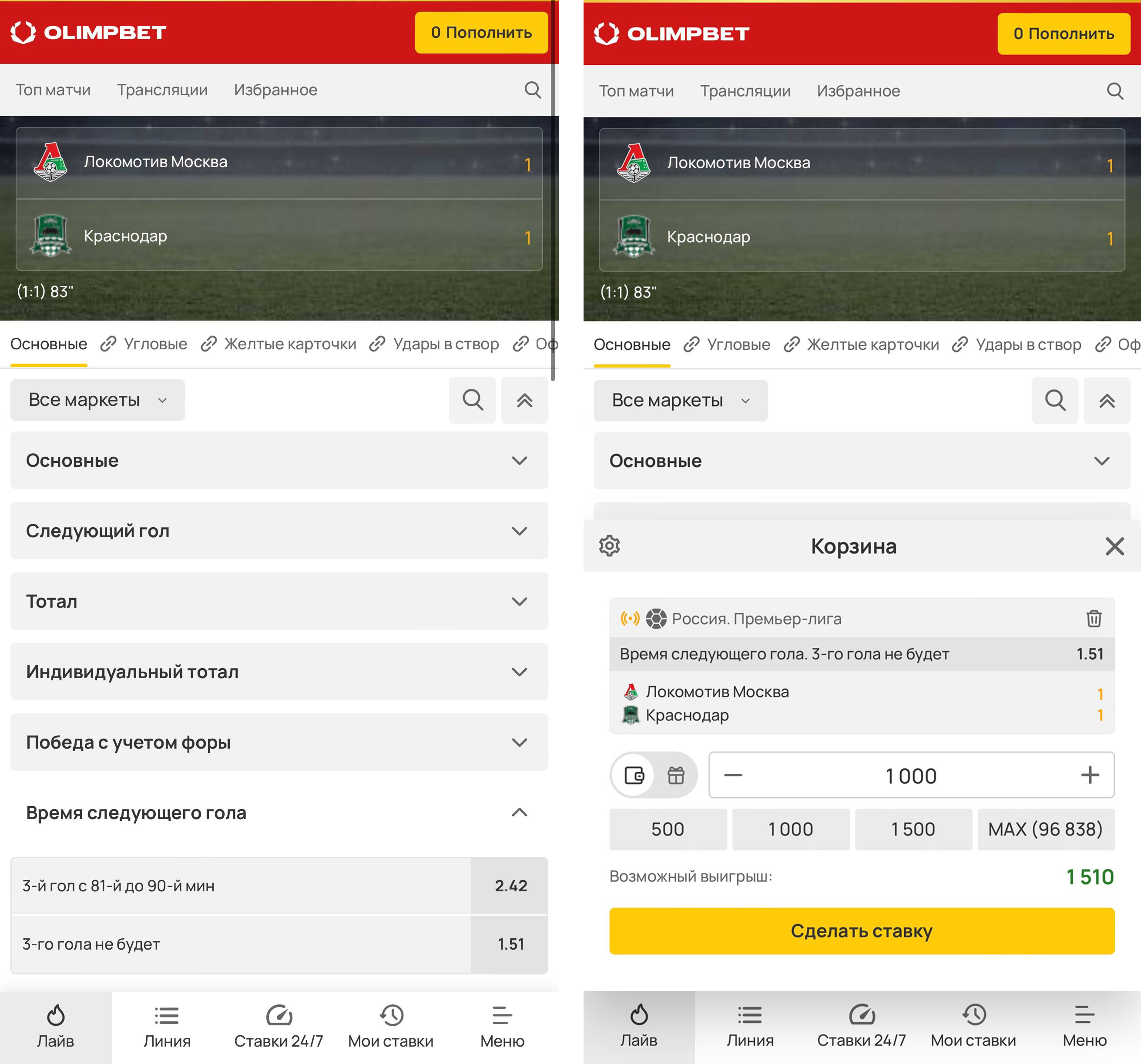 - Второй – лайв, пари заключается прямо во время спортивного события.