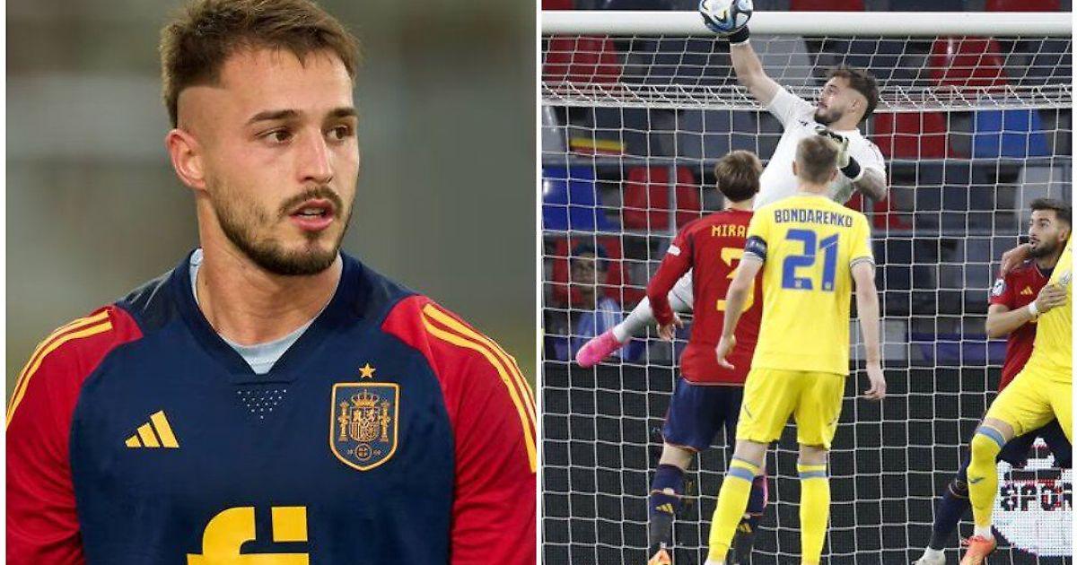 А так Тенас выручал испанцев в игре против сборной Украины в моменте, который создал игрок «Челси» Михаил Мудрик.