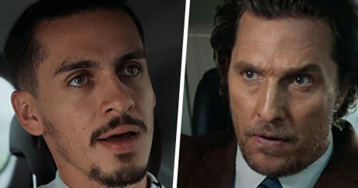 По сюжету герой Макконахи, Микки Пирсон, получает предупреждение от своего помощника: «Не садитесь в машину, босс» – но слишком поздно, потому что читает сообщение уже на заднем сидении.