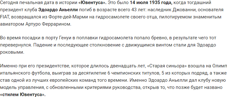 Сегодня исполняется 88 лет со дня смерти президента «Ювентуса» Эдоардо Аньелли