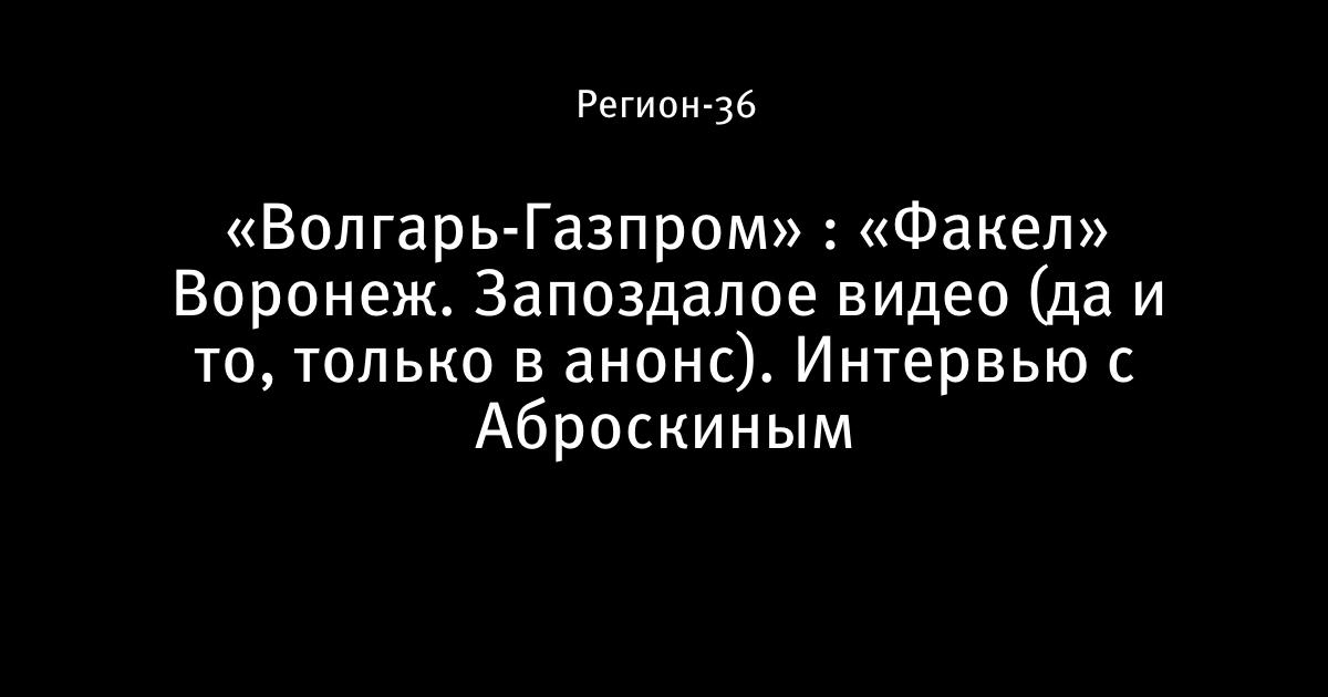 «Волгарь-Газпром» : «Факел» Воронеж. Запоздалое видео (да и то, только в анонс). Интервью с Аброскиным