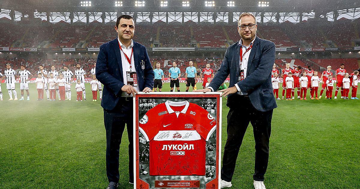 В ПРЕДДВЕРИИ ТОВАРИЩЕСКОГО МАТЧА НА «ОТКРЫТИЕ БАНК АРЕНЕ» ДОКУМЕНТ ПОДПИСАЛИ РУКОВОДИТЕЛИ КЛУБОВ — ГЕНЕРАЛЬНЫЙ ДИРЕКТОР «СПАРТАКА» ОЛЕГ МАЛЫШЕВ И ПРЕЗИДЕНТ «НЕФТЧИ» КЯМРАН ГУЛИЕВ.