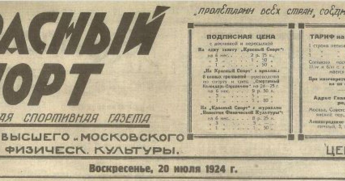 20 июля 1924 года считается днём рождения российской спортивной периодики, именно в этот день вышел первый выпуск первой еженедельной спортивной газеты - «Красный спорт». Несмотря на то, что современная редакция «Советского спорта» зачем-то оспаривает очевидное (в лучших традициях московских спортивных обществ), поколения людей запомнили спортивную прессу в стране именно в формате самостоятельной газеты, а не малоизвестного приложения.